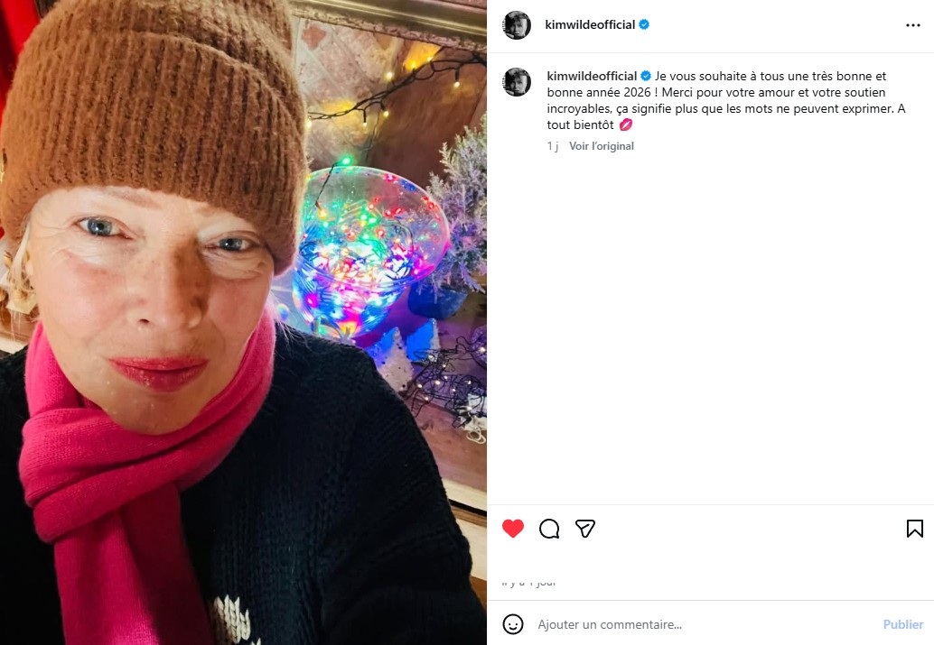 Bonne Année 2026 – Kim Wilde sur Instagram Par MiniKim le 1 janvier 2026 dans Kim Wilde en 2026 À tous les fans de notre Love Blonde, je vous souhaite une année lumineuse, pleine d’énergie, de passion et de musique qui nous rassemble. Très belle année à tous.
