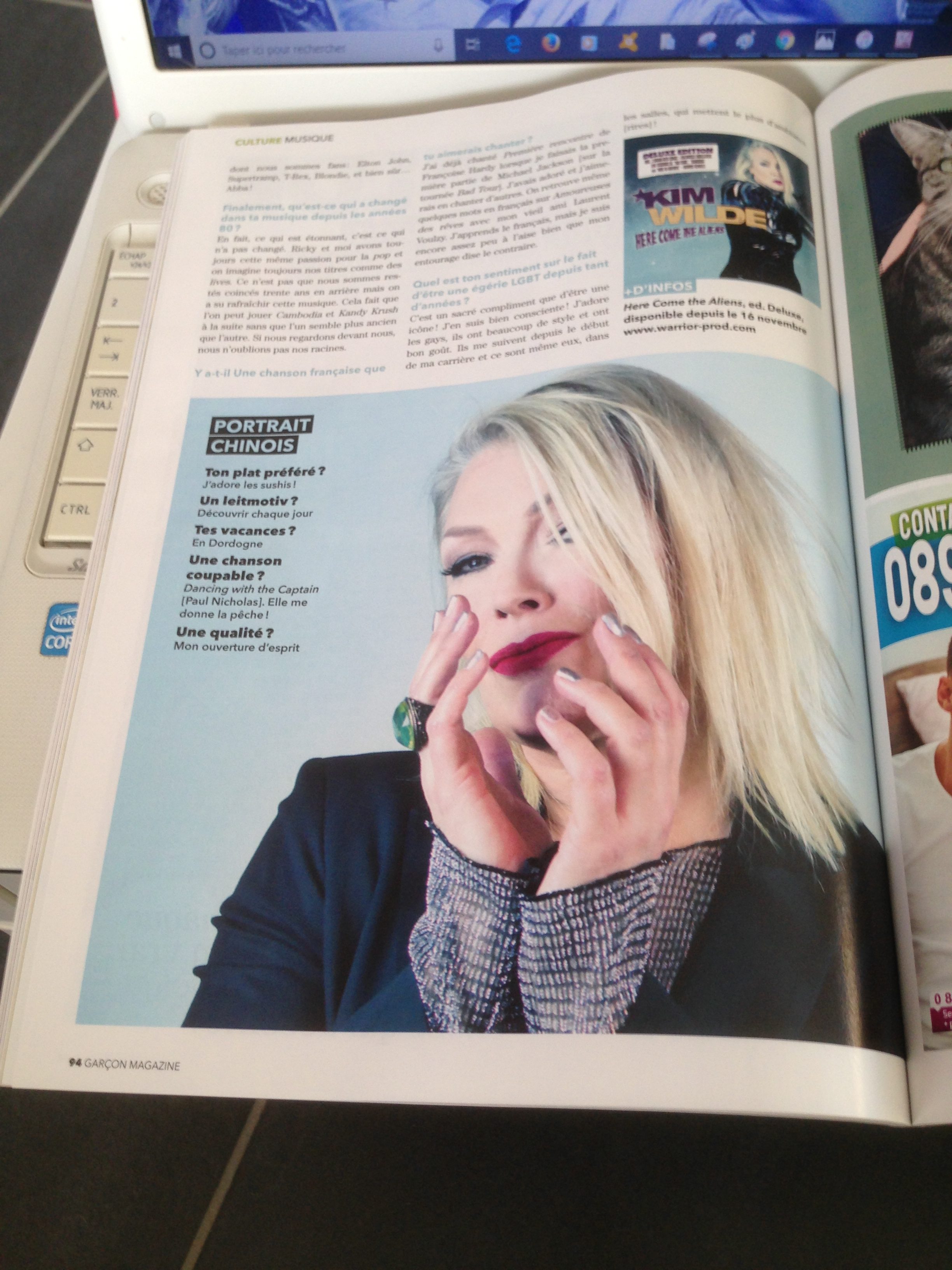 Le magazine gay ‘Garçon Magazine’ de janvier/février comprend 3 pages de notre Love Blonde. C’est Rémi Berger qui l’a interviewée lorsque qu’elle était à Paris en novembre dernier lors de sa promo pour la tournée Française.