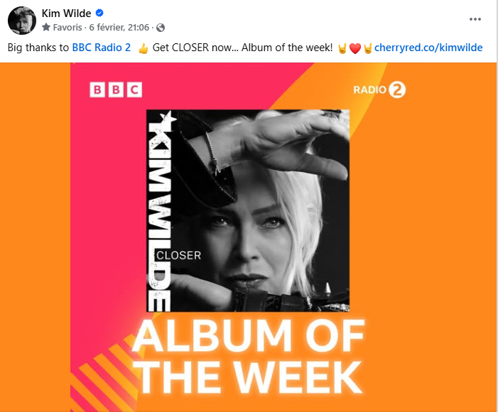 Kim Wilde – Album de la semaine sur BBC Radio 2 /UK – 6/02/25 Par MiniKim le 6 février 2025 dans Kim Wilde en 2025