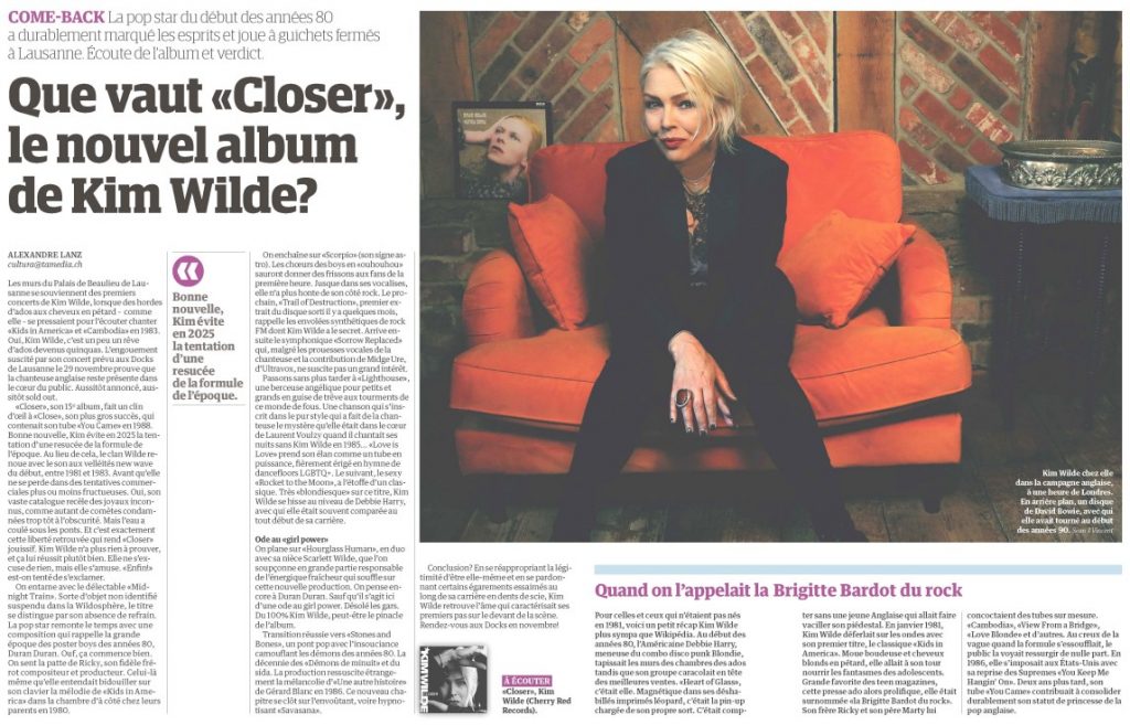 Kim Wilde – Le matin Dimanche /CH – 2/02/25 Par MiniKim le 2 février 2025 dans Kim Wilde en 2025 Un article dans le journal gratuit Suisse ‘Le Matin Dimanche’ du 2 février