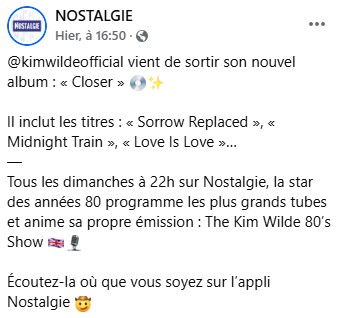 Kim Wilde – Radio Nostalgie /UK – 7/02/25 Par MiniKim le 7 février 2025 dans Kim Wilde en 2025 Accédez à Kim Wilde 80s Show via la radio Nostalgie
