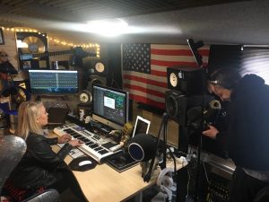 « Nous sommes avec @kimwilde pour le tournage @itvnews nous parlons @TheBRITAward et du nouvel album et de #PopDontStop, single de la semaine sur @Radio2″