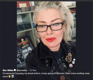 Tweet de Kim Wilde – 22/02/2019 Par MiniKim le 24 février 2019 dans Kim Wilde en 2019 Message de Kim : « Salut tout le monde ! Profitant de ma pause avant un printemps et un été occupés. Des nouvelles excitantes bientôt ! 🤘👽